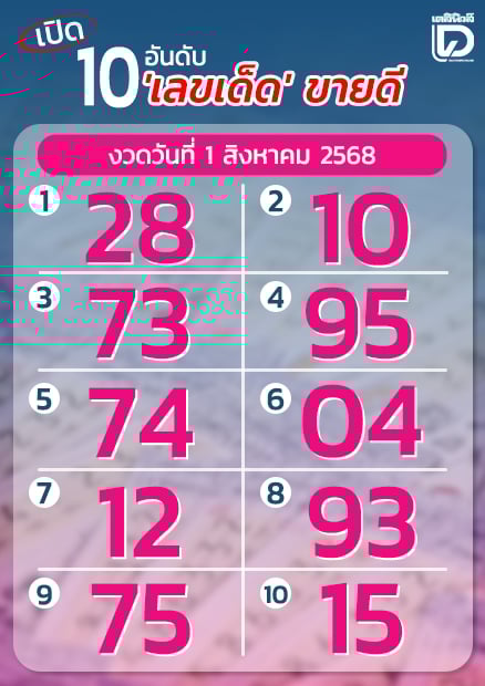 รีบเลย 10 เลขเด็ดมาแรง งวดวันที่ 1 ส.ค.68 เลข 728 มาแรง ลุ้นรวยเป็นมหาเศรษฐีใหม่