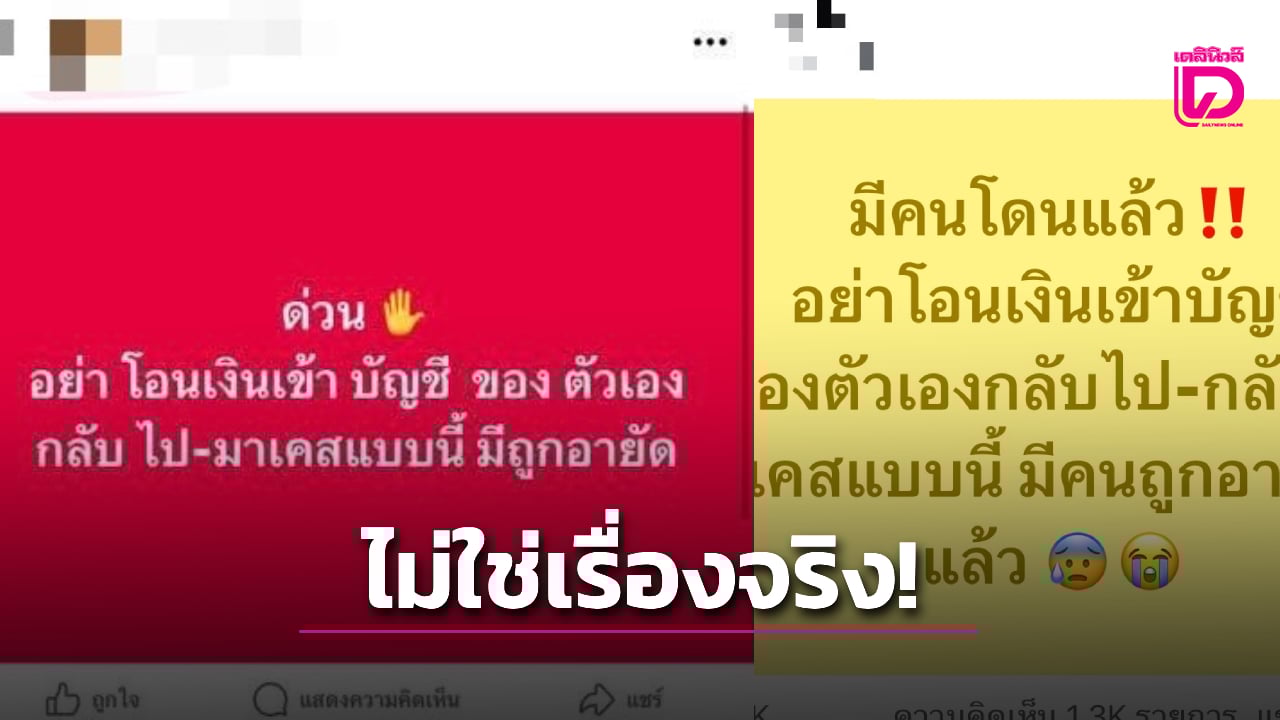 โซเชียลร้อนอีก! พากันแชร์ข้อความ อย่าโอนเงินเข้าบัญชีตัวเองกลับไป-มาจะถูกอายัด ”ธปท.“ ยืนยัน ไม่จริง! ถ้าเป็นเงินของตัวเอง