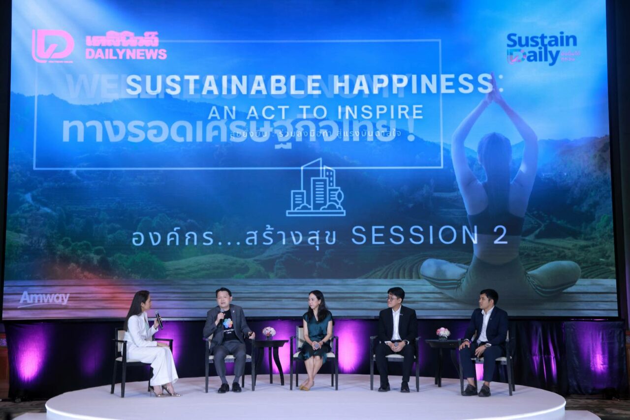 ทั้งนี้ภายในงานเสวนาได้รับเกียรติจากนายชัชชาติ สิทธิพันธุ์ ผู้ว่าราชการกรุงเทพมหานคร (กทม.) มาร่วมฉายภาพ กทม.เดินหน้าสร้างเมืองที่สุขได้จริง พร้อมด้วยเวทีเสวนาหัวข้อ “องค์กรสร้างสุขอย่างไร ให้พนักงานขับเคลื่อนธุรกิจไปด้วยกัน” จากผู้บริหารองค์กรทำจริง นำโดย นายทศพร นิษฐานนท์ กรรมการผู้จัดการ แอมเวย์ ประเทศไทย นางชาตยา สุพรรณพงศ์ ประธานเจ้าหน้าที่บริหาร บริษัท ฟู้ดแพชชั่น เจ้าของแบรนด์บาร์บีคิว พลาซ่า นายณัฐกร ไกรกุล ผู้จัดการฝ่ายกลยุทธ์ความยั่งยืน บมจ.ปตท. ผู้บริหารรุ่นใหม่ และนายศุภเศรษฐ์ กิตติพล ซีอีโอ มีสุขฟาร์ม วิสาหกิจชุมชนที่ช่วยสร้างรายได้ชุมชน