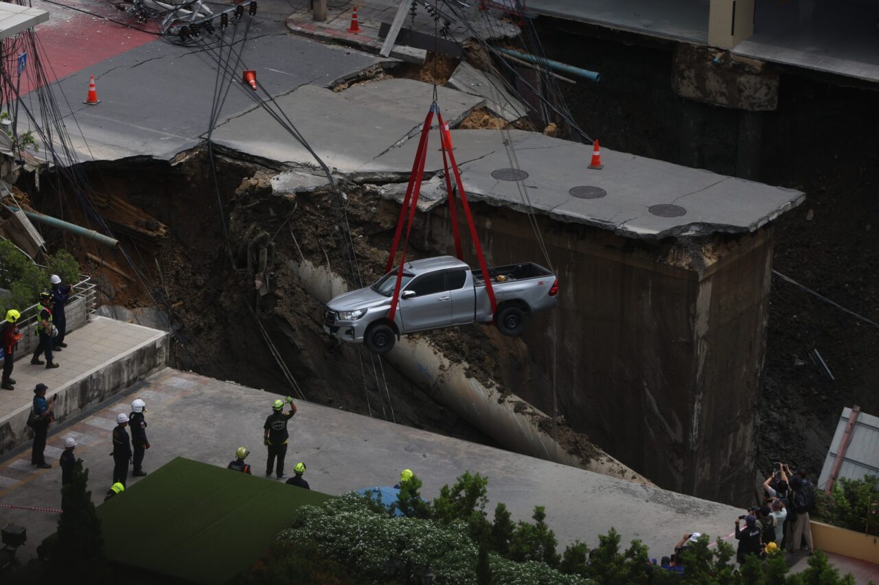 เมื่อเกิดเหตุถนนทรุดยุบตัว รถตกลงไปทำยังไง?