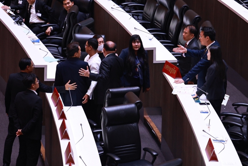 เมื่อตนอภิปรายเสร็จแล้วและนั่งลง นายปกรณ์วุฒิ อุดมพิพัฒน์สกุล สส.บัญชีรายชื่อ พรรคประชาชน เดินปรี่เข้ามาที่นั่งของตน จากนั้นก็มีคนตามมาอีก 10 คน