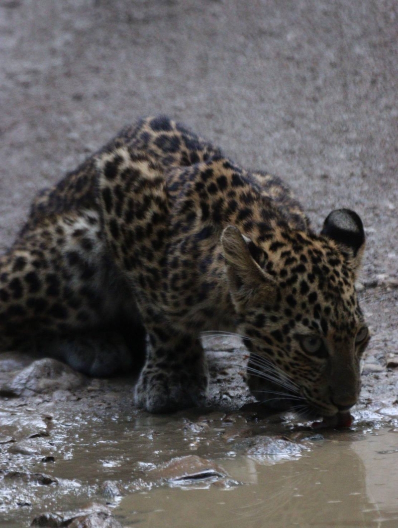 แก่งกระจาน เผยภาพ "เสือดาววัยรุ่น" โผล่กินน้ำริมลำธาร ผืนป่ามรดกโลก (ถ่ายภาพโดย นายปรีชา ทองประไพ)