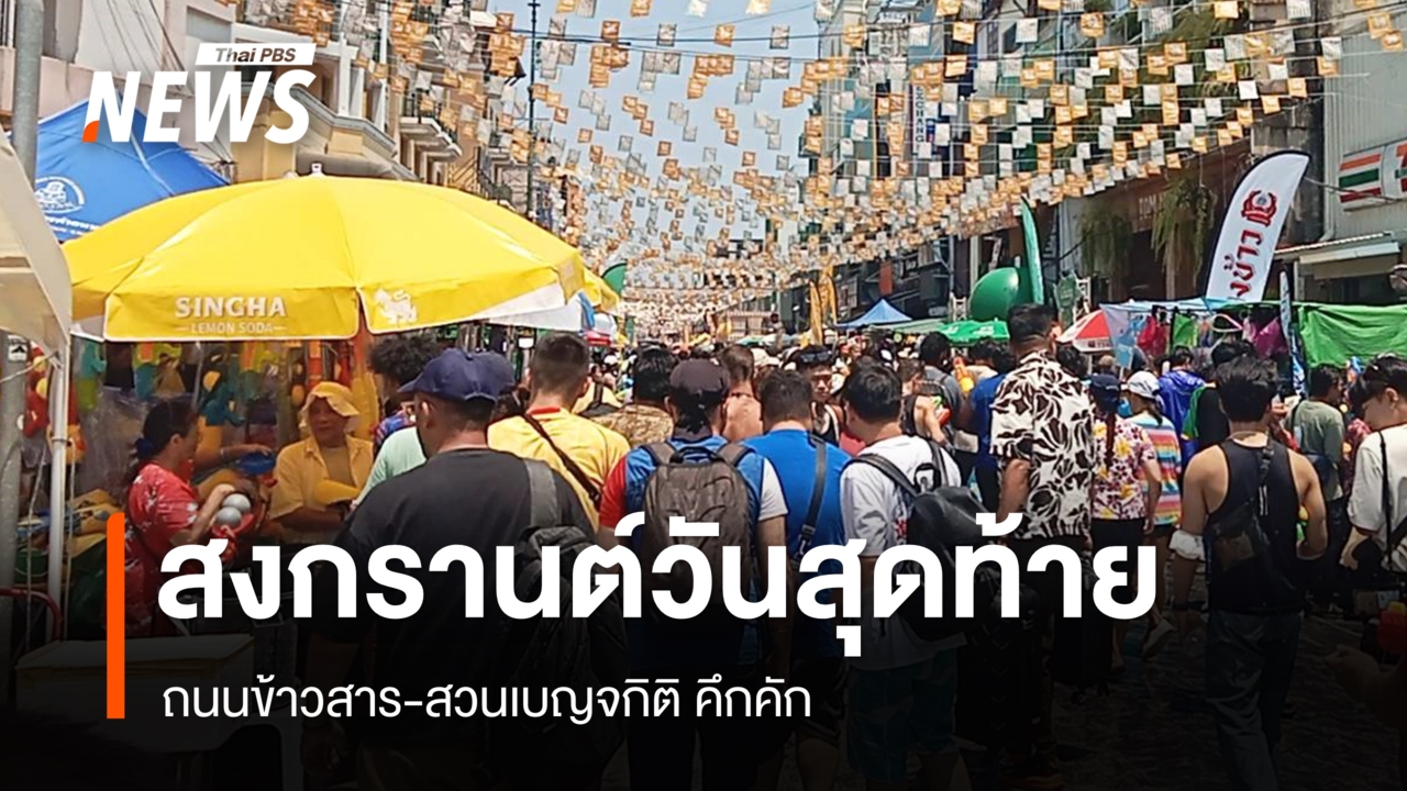 สงกรานต์วันสุดท้าย ที่ สวนเบญจกิติ เริ่มแล้วตั้งแต่เวลา 11.00 น.ผู้จัดงานคาดวันนี้จะมีจำนวนนักท่องเที่ยวเดินทางเข้ามาร่วมงานจำนวนมาก ขณะที่ ถนนข้าวสารคึกคัก ท่ามกลางมาตรการรักษาความปลอดภัยอย่างเข้มงวด ด้านผู้ค้าปรับลดราคาะอุปกรณ์เล่นน้ำวันนี้ (15 เม.ย.2569) สำหรับวันสุดท้ายของการจัดงานสงกรานต์ระดับโลก หรือ มหาสงกรานต์ 2026 ณ สวนเบญจกิติ กรุงเทพมหานคร ซึ่งวันนี้คาดการณ์ว่าจะมีนักท่องเที่ยวเดินทางเข้าพื้นที่จำนวนมาก เนื่องจากเป็นวันสุดท้ายของการจัดงาน ขณะที่กิจกรรมภายในงานอัดแน่นไปด้วยความสนุก ทั้งโซนเล่นน้ำ โซนอาหาร และโซนเวทีคอนเสิร์ต