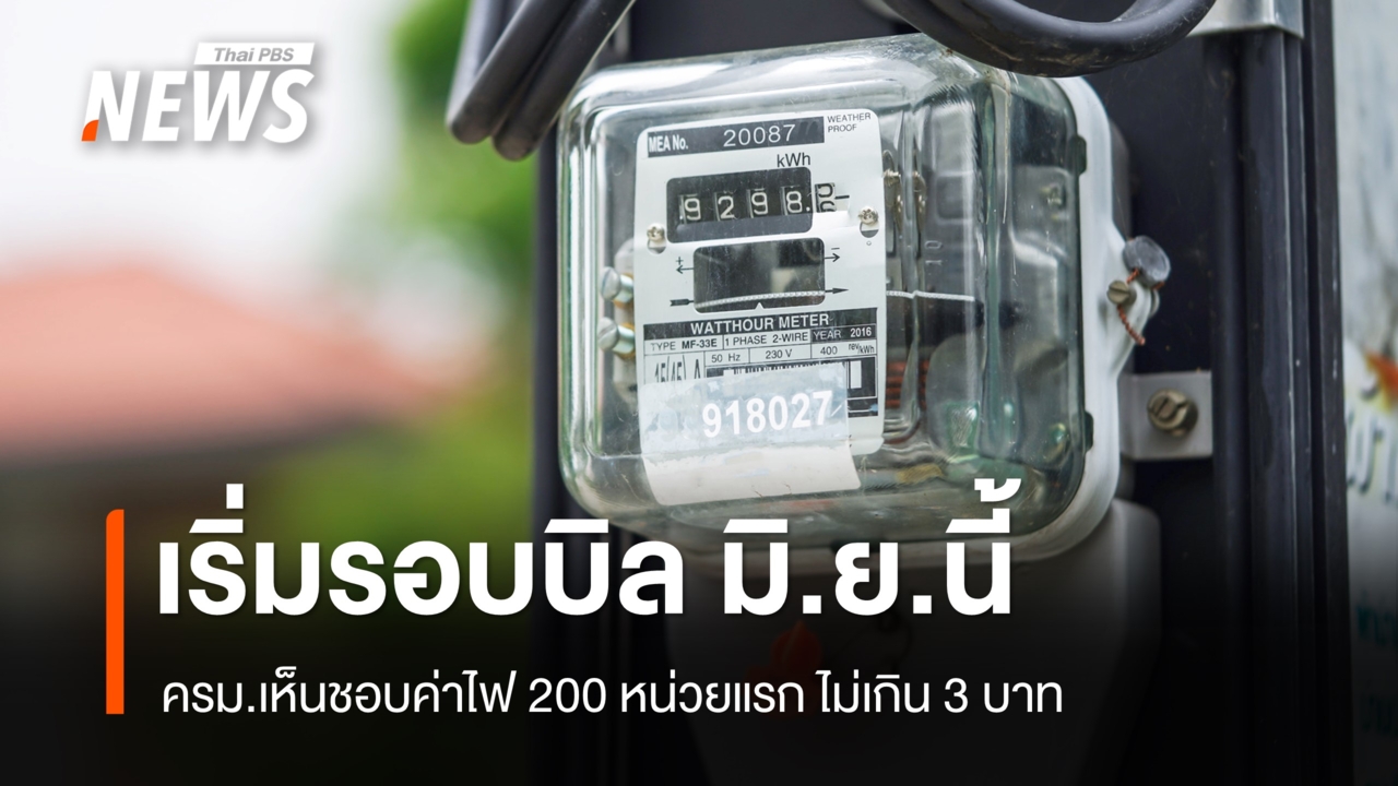 ครม.เห็นชอบค่าไฟ 200 หน่วยแรก ไม่เกิน 3 บาท เริ่มรอบบิล มิ.ย.นี้