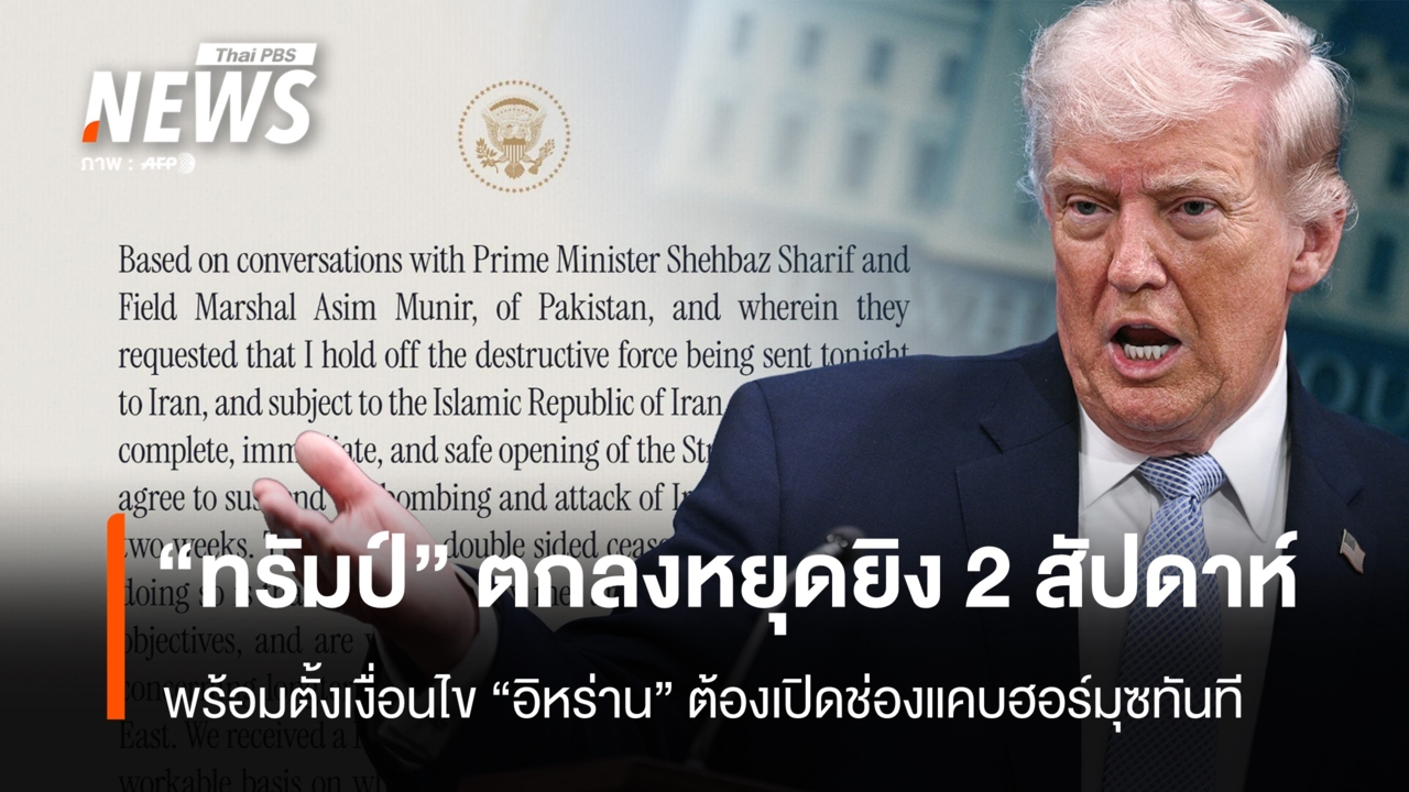 "ทรัมป์" พร้อมหยุดยิง แย้มเงื่อนไข "อิหร่าน" ต้องเปิดช่องแคบฮอร์มุซโดยสมบูรณ์อย่างปลอดภัยและทันที พร้อมระบุ ขณะนี้กำลังดำเนินการกับข้อตกลงที่ชัดเจนเกี่ยวกับสันติภาพระยะยาวกับอิหร่าน